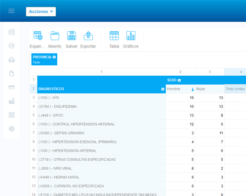 Sistema modular y adaptado a las funcionalidades de diferentes tipos de consulta médica. Incluye los códigos diagnósticos, catálogos de medicamentos oficiales, y otros catálogos estandarizados de procedimientos, y solicitudes de gabinete, entre otros.